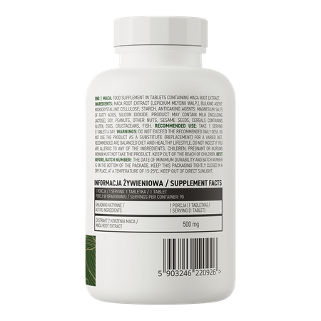 OstroVit Maca VEGE dodatak prehrani sadrži visokokvalitetni ekstrakt korijena mace (Lepidium meyenii), poznate i kao “peruanski ginseng”. Ova biljka se tradicionalno koristi stoljećima u Andama, gdje je cijenjena zbog svoje hranjive vrijednosti i prirodnih svojstava koja podržavaju vitalnost i ravnotežu organizma.